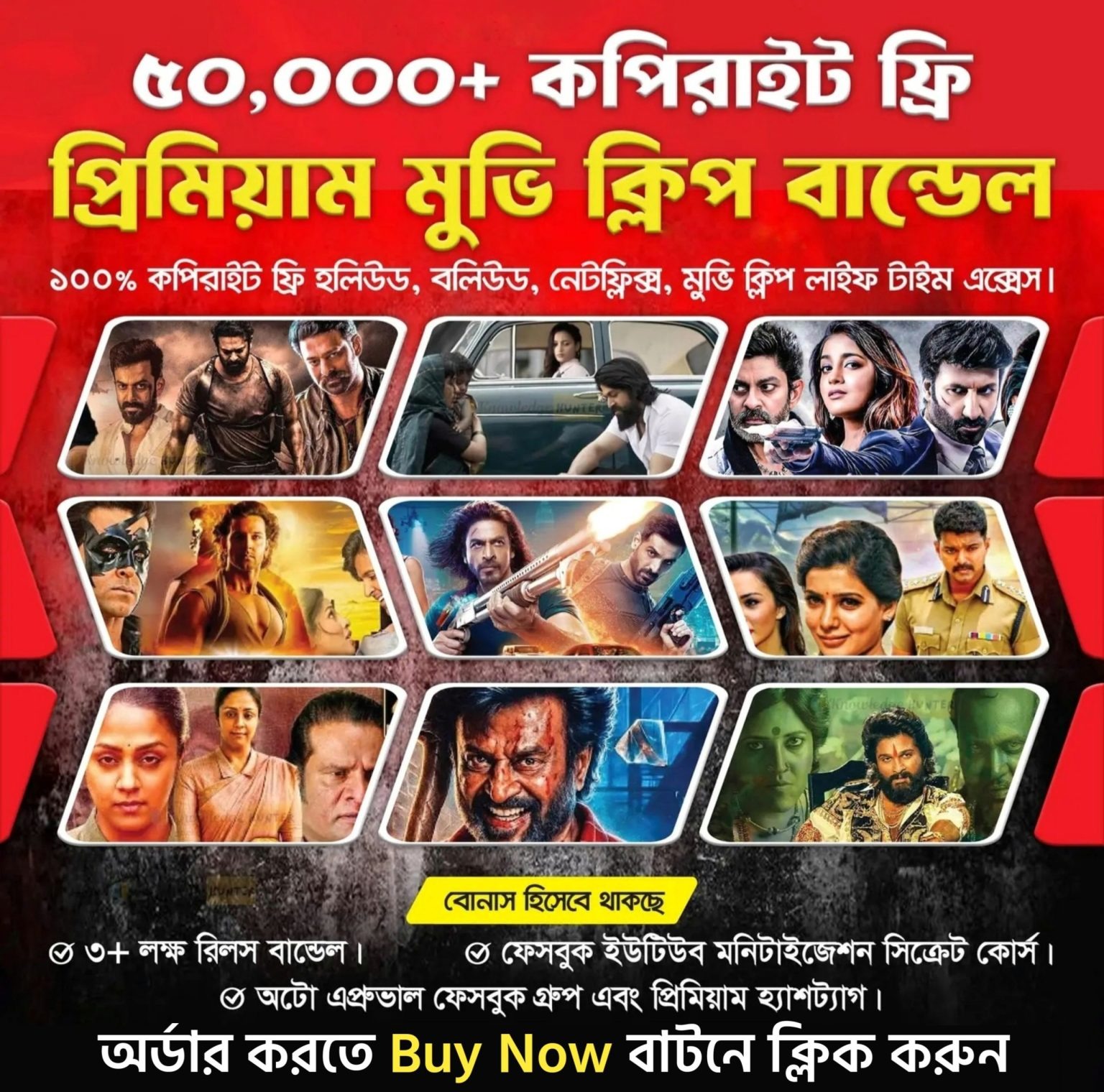 ৫০,০০০+ রেডি-টু-আপলোড কপিরাইট ফ্রি মুভি ক্লিপ বান্ডেল (হলিউড, বলিউড, নেটফ্লিক্স)