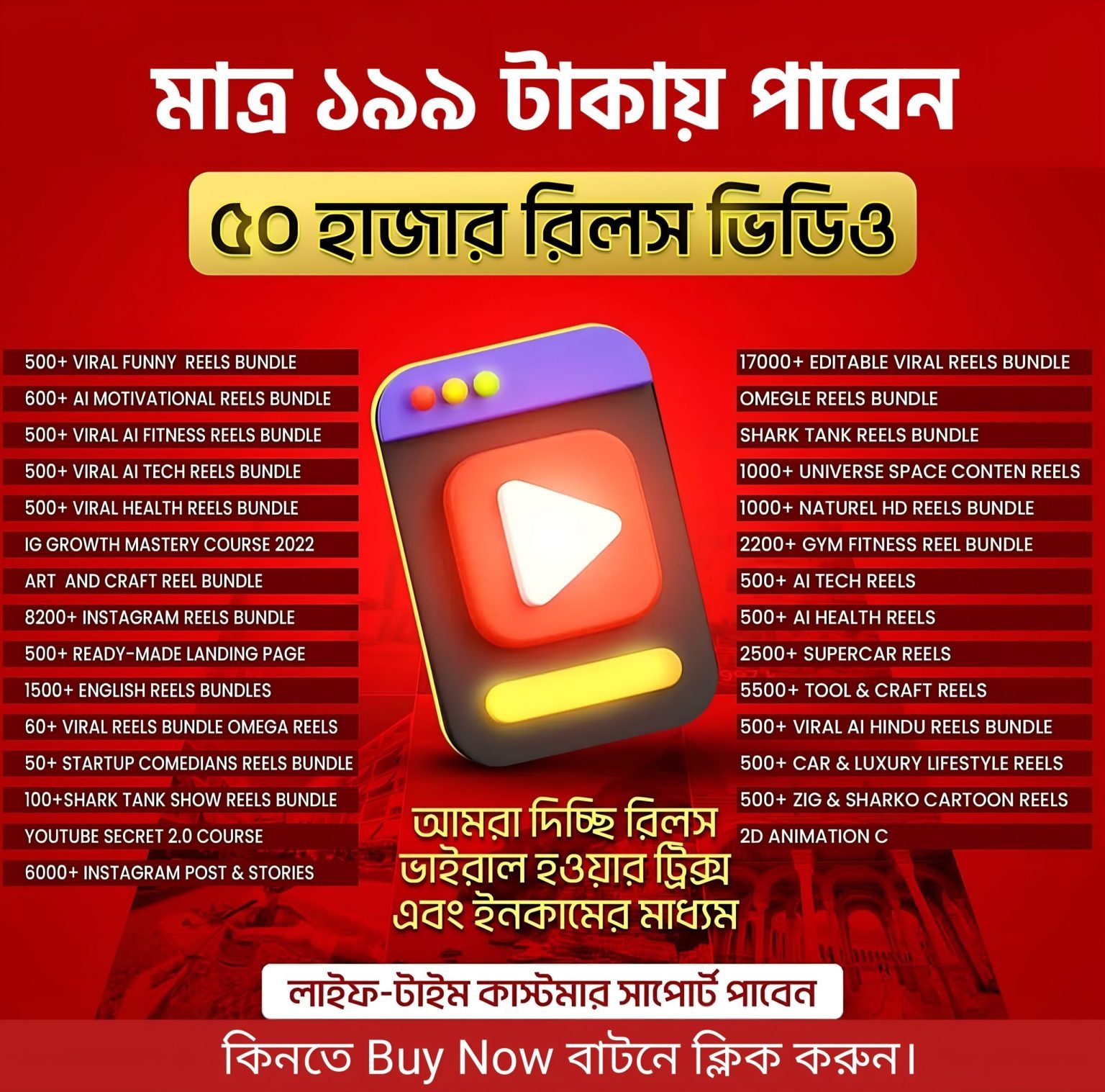 50000+ রেডিমেইড AI Reels ভিডিও অফার প্রাইজে মাত্র ১৯৯ টাকা